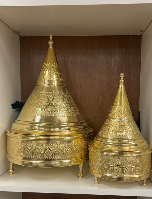 Btek marocain traditionnel en cuivre jaune – Élégante pièce de service