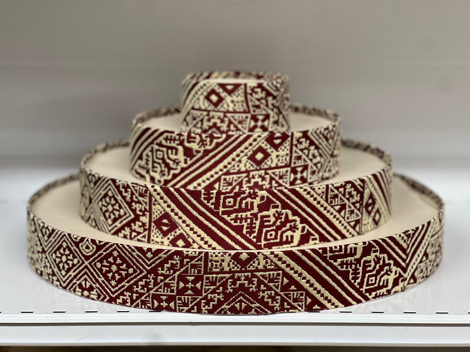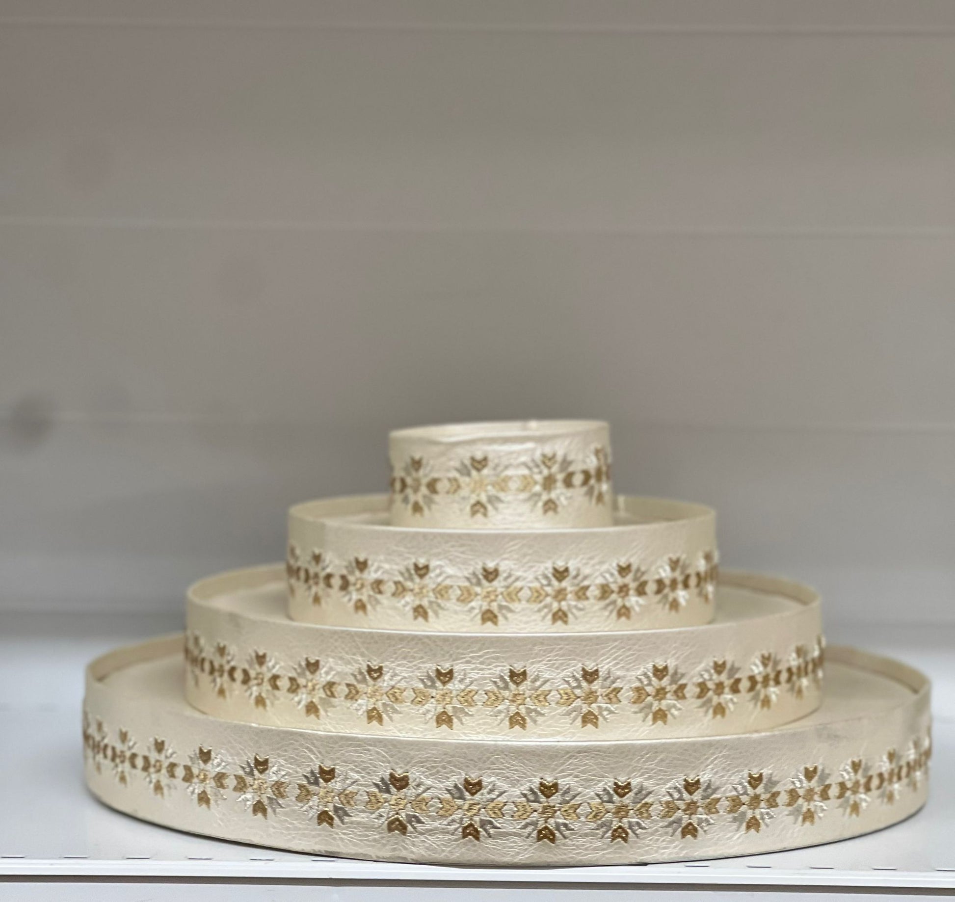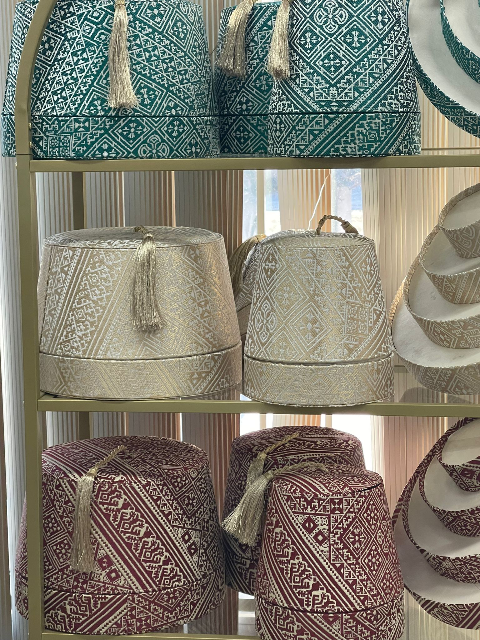 Disponible en plusieurs finitions : • Tissu brodé (rouge, or, vert) • Simili cuir pour un look plus moderne et luxueux